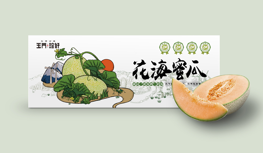 玉門珍好項目從品牌命名到形象終端落地,服務內容: 品牌全案策劃,品牌定位,品牌調性,賣點提煉,品牌命名,超級符號設計,LOGO設計,VI設計,包裝設計,終端形象設計,后期維護等,產品分為:黑枸杞、紅枸杞、胡麻油、韭菜、葵花籽、辣椒、藜麥、蜜瓜、蟠桃、葡萄、羊肉、羊羔肉和人參果13個類別,為了樹立一套有地域性、有產品個性和高度統一性的形象識別,智慧天成團隊受當地政府委托,用時半個月幾乎走遍玉門地標,充分了解掌握當地產業和文化,并提煉玉門最具代表性的人文、建筑、地理環境等元素,純手繪插畫形式把產品和玉門風情完美融合,形成一幅幅有創意的、生動的、美好情懷的迷人畫面。